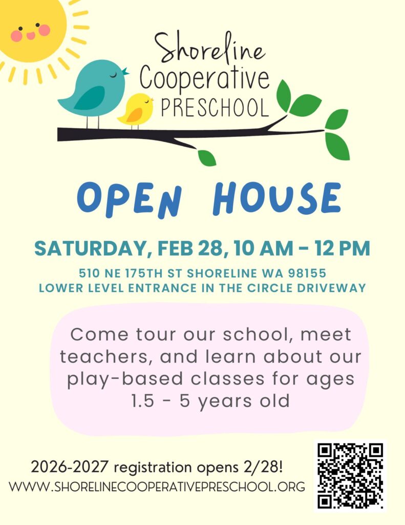 For more than 50 years, Shoreline Cooperative Preschool has been a community- and family-oriented preschool providing a place for kids and parents to learn and grow together with warmth and respect.